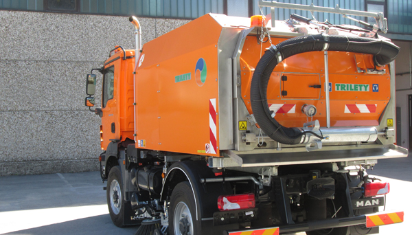 Der Kehraufbau Typ TK56 ist als Schnellwechselsystem konzipiert. Die gewohnte Trilety-Qualität bietet hohe Verarbeitungsqualität in Kombination mit Haltbarkeit, Kompaktheit und leichter Zugänglichkeit sämtlicher relevanten Komponenten. Der Behälter sowie der integrierte Frischwassertank sind komplett aus Edelstahl gefertigt. Neben der optionalen Doppelseitigkeit der Maschine (Dual-Ausführung), stehen noch etliche weitere Sonderausstattungsmöglichkeiten, wie z. B. zusätzliche Frontbesen oder diverse Wascheinrichtungen, zur Verfügung. Die Kompaktheit des Aufbaus in Kombination mit dem relativ kurzen Radstand des MAN TGM von 3050 mm bieten dem Anwender ein Maximum an Effizienz und Beweglichkeit.