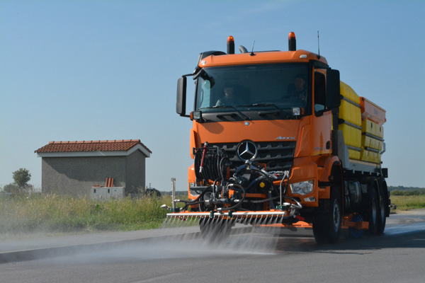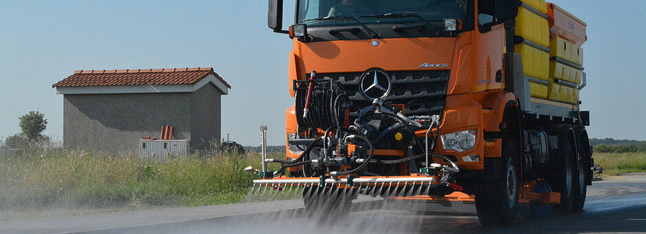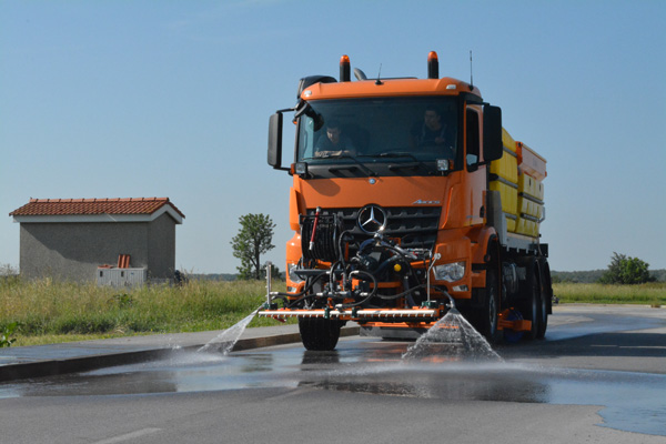 Das Waschgerät wird auf die vordere LKW-Platte montiert und alles wird von der Fahrzeugkabine aus gesteuert, mithilfe einer Steuereinheit. An dem Waschgerät befindet sich auch eine Hochdruckpumpe, die seinen Zugang zu allen Wasserbehältern ermöglicht, einschließlich der RASCO LIQUID und SOLID C Streuer. Auf diese Weise wird ein Winterdienstfahrzeug zu einem universalen Kommunalfahrzeug, das das ganze Jahr über genutzt werden kann.