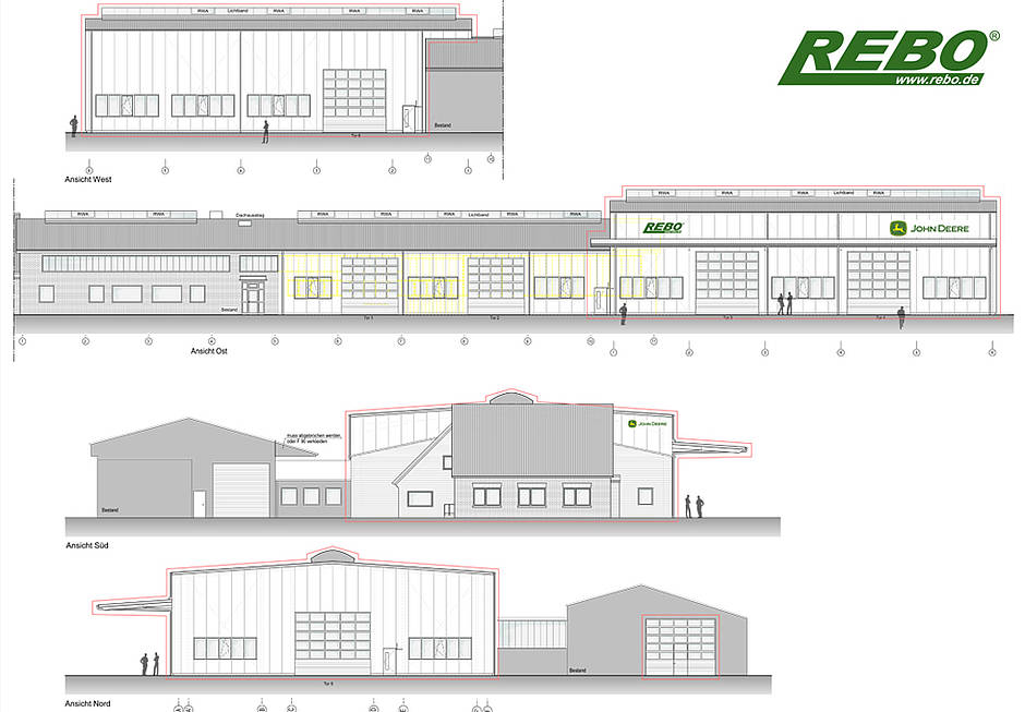 Um auch künftig den Anforderungen der Kunden gerecht zu werden und die Servicequalität zu halten, wird das Rebo Service-Kompetenz-Center vollständig modernisiert und um 750 auf dann 2000 Quadratmeter erweitert. Eine neun Meter Montagegrube und eine fünf Tonnen Krananlage wird die Effizienz zugunsten des Kunden deutlich steigern. Hinzukommt eine umfassende energetische Dämmung sowie eine Bodenheizung im Werkstattbereich.