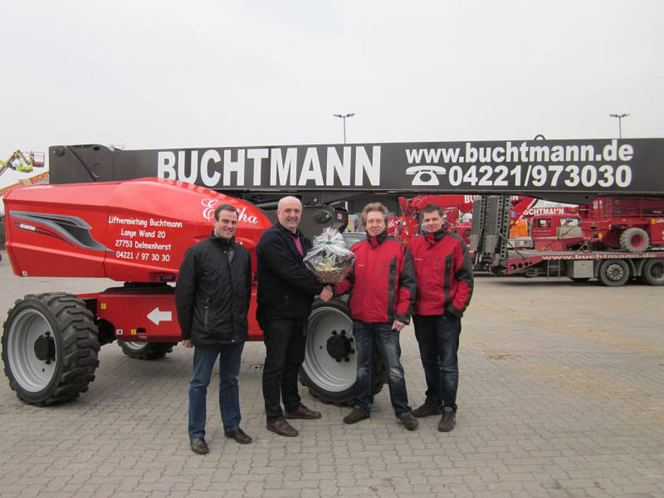 Die Firma Buchtmann aus Delmenhorst vermietet seit 1984 mittlerweile über 560 verschiedene Arbeitsbühnen unterschiedlichster Art für fast alle Anforderungen. Damit eine höchstmögliche Einsatzsicherheit und ein reibungsloser Betrieb gewährleistet werden kann, unterhält die Firma Buchtmann zudem eine Servicemobil-Flotte mit Reparatur-Werkstatt.