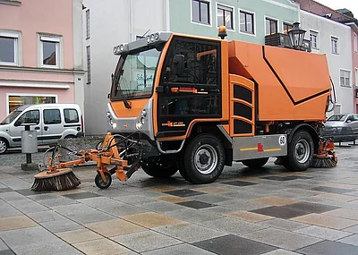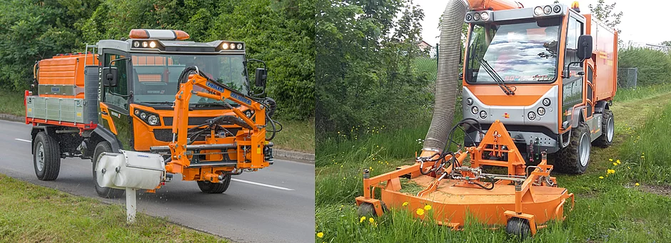 Aufgrund seiner besonderen Eigenschaften ist der Muli T10 X HybridShift besonders für Stop and Go Einsätze wie Parkplatzschneeräumung, Leitpfosten- und Schilderwaschen sowie Müllentsorgung bestens geeignet.