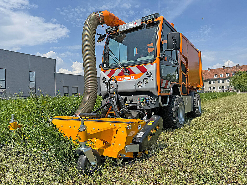 Seit vielen Jahren besteht die Zusammenarbeit zwischen REFORM und der Firma MÜTHING, einem erfahrenen Anbieter innovativer Mulch- und Pflegetechnik. Die erstmalige Kombination eines MU-COLLECT-VARIO-160-Frontmulchers mit dem Boki und der von REFORM verwendeten Absauganlage stellt einen weiteren Meilenstein dieser Partnerschaft dar. Ziel war es, ein effizientes, robustes und kommunal-taugliches System für Pflegeeinsätze auf schwer zugänglichen Flächen zu schaffen.