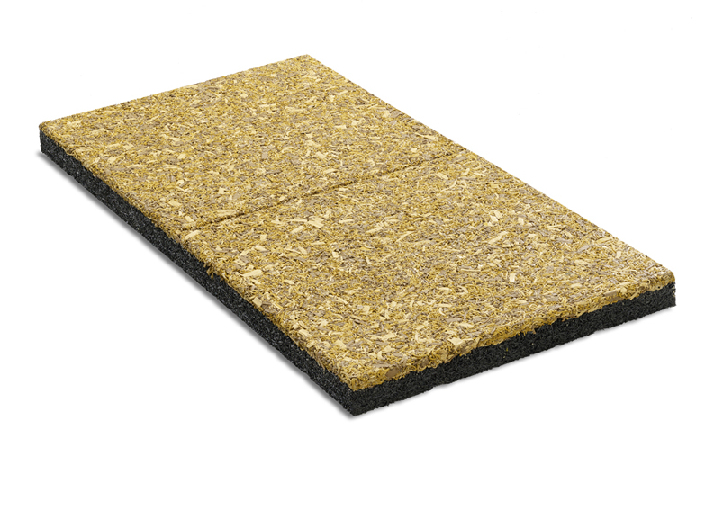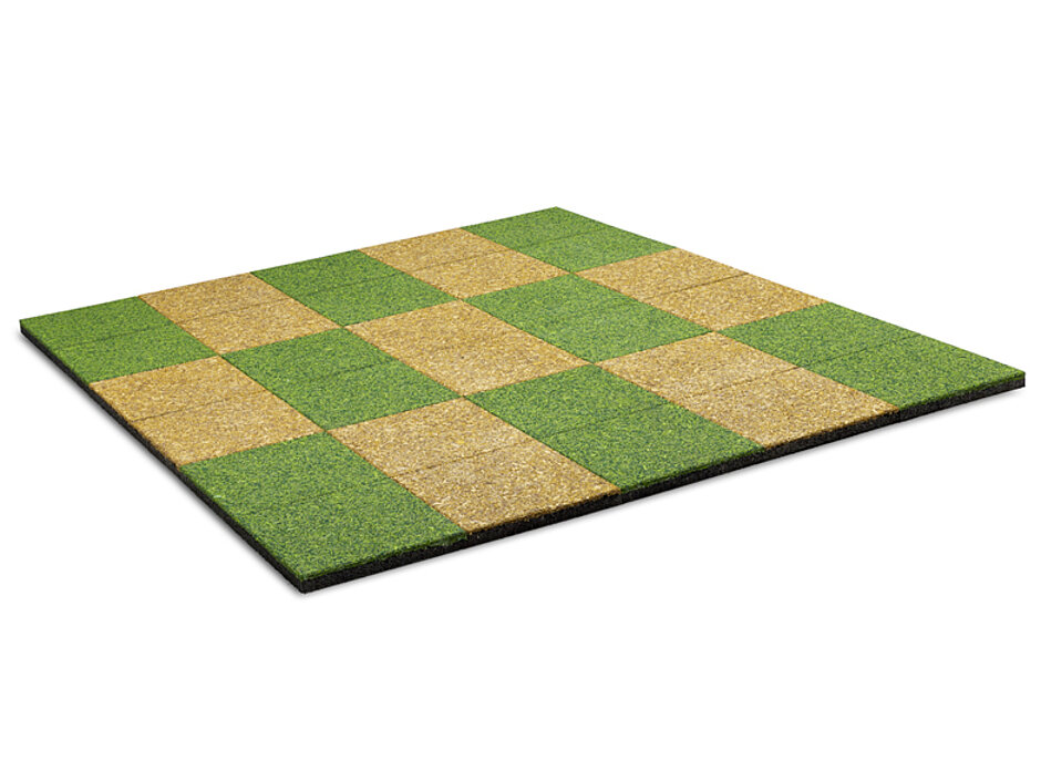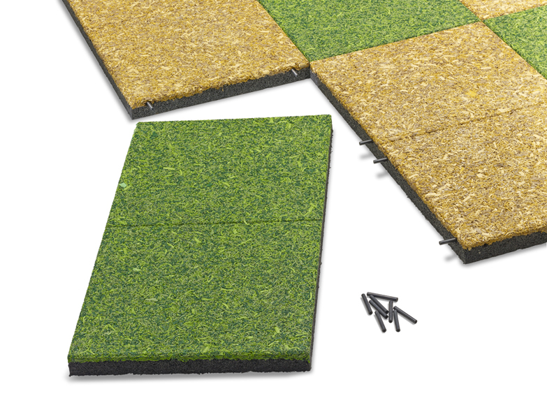 Der Hersteller von Sport- und Fallschutzböden, BSW, hat eine Fallschutzplatte mit einer neuen, dekorativ gestalteten Oberfläche entwickelt. Die Regupol Fallschutzplatten FXM haben eine verschiedenfarbige Nutzschicht, deren Struktur an Rinden Mulch oder niedrigen Pflanzenbewuchs erinnert. Sie stehen in je einer Farbmischung aus Braun-Beige und verschiedenen Grüntönen zur Verfügung.