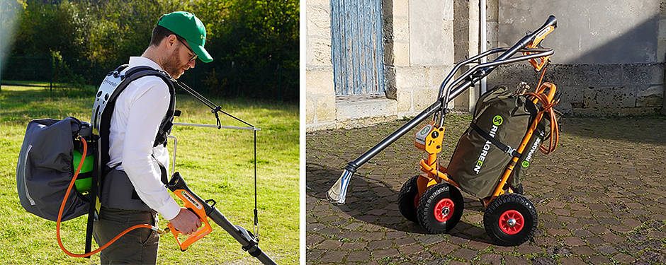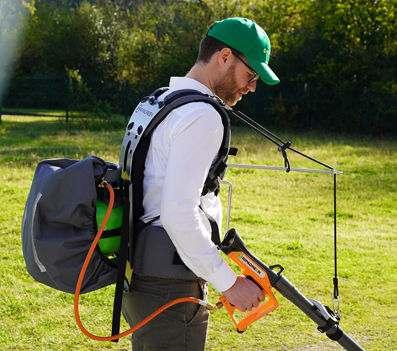 Um Einsätze an unübersichtlichen Stellen zu ermöglichen, ist die RIPAGREEN in verschiedenen Ausführungen erhältlich. Die bekannteste ist das EASY-Kit, bei dem die Thermolanze mit einem multimodalen Wagen, ausgestattet mit einer Dreizehn-kg-Propangasflasche, kombiniert wird. Anwender können sich die Arbeit damit erleichtern, indem sie die Lanze während langer, gerader Arbeitsabschnitte auf den Wagen legen und die Pflanzen so erhitzen. Für detailliertere Arbeiten kann diese wieder aufgenommen werden. Wer dagegen nach noch mehr Mobilität verlangt, für den ist das EASY⁺-Kit genau die richtige Wahl. Diese Variante kombiniert die Vorteile des EASY-Kit mit der Ergonomie des Rückentragegestells „Mobility“, um effektiver arbeiten zu können. „Die Last der Flasche liegt hier aber nicht auf dem Rücken, sondern den Hüften. Gewichtstechnisch ist das EASY⁺-Kit ist damit nicht schwerer als ein Wanderrucksack“, erläutert Bossmann. „Zusätzlich dazu ist noch eine Hebeunterstützung in der Lanze verbaut, sodass die RIPAGREEN-Thermolanze auch über längere Zeiträume mühelos mit der Hand geführt werden kann.“ Besonders Treppenanlagen lassen sich damit bequem und einfach bearbeiten. Um weiteren Anwenderkomfort zu ermöglichen, lässt sich das leichte Tragegestell problemlos auf drei verschiedene Körpertypen einstellen. Dies sorgt für eine unübertroffene Vielseitigkeit im innerstädtischen Einsatz, wo immer wieder zwischen großen Arealen und komplexen Kleinflächen gewechselt werden muss.