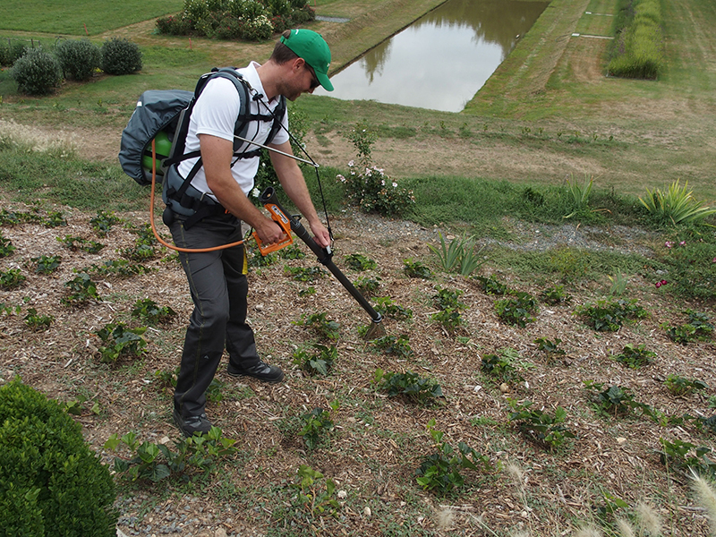 Eine effektive Lösung wird mit der RIPAGREEN-Thermolanze ermöglicht. „Sie ist die einzige Lanze, die mittels eines optimalen Gemischs aus Umgebungsluft und Propangas einen Heißluftstrom mit rund 450 Grad erzeugen kann. Damit kann Unkraut schnell auf 68 Grad erhitzt werden, und das verursacht in der Pflanze einen sofortigen Thermoschock“, erklärt Bernd Bossmann, Geschäftsführer der Kersten Arealmaschinen GmbH. Als Folge zerplatzen die Zellwände und das Wildkraut wird abgetötet. Bei einer regelmäßigen Behandlungsfrequenz wird die gesamte Pflanze bis zur Wurzel zerstört. Dazu ist kein Kontakt nötig. Die RIPAGREEN muss nur für ein paar Sekunden in einem Abstand von rund 30 cm auf das Wildkraut gerichtet werden. Gerade für Kommunen stellt das eine große Erleichterung dar: „Seit der Glyphosateinsatz verboten ist, haben die ein großes Problem mit Unkraut“, sagt Stefan Flohn von der Raiffeisen-Waren-Zentrale-Rhein-Main Eg: „Stattdessen wird oft mit einem Dachpappenbrenner gearbeitet, was schon zu versehentlich angezündeten Hecken geführt hat. Mit der RIPAGREEN-Thermolanze kann dagegen mit hohem Arbeitstempo und mehr Flächenleistung gearbeitet werden, während das Risiko einer Entzündung deutlich geringer ist.“