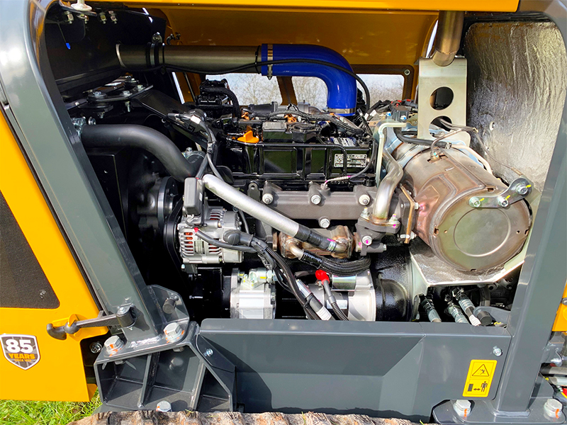 Kraftquelle des RC40 ist ein 40 PS starker Dreizylinder-Dieselmotor von Yanmar, der mit einem DPF-Filtersystem ausgestattet ist und so die neuesten Emissionsvorschriften der Stufe V auch ohne den Einsatz von Adblue erfüllt. Der Antrieb erfolgt hydrostatisch. Dazu stehen zwei Geschwindigkeitsbereiche von bis zu vier km/h in der ersten und bis zu sieben km/h in der zweiten Stufe zur Verfügung. Neben den Standard-Gummiraupen kann der Mähroboter auch mit Raupen mit A/S Profil oder mit Steigeisen und Spikes ausgestattet werden. Damit bewältigt die Maschine auch Hänge mit bis zu 55 Grad Neigung in jeder Richtung problemlos.