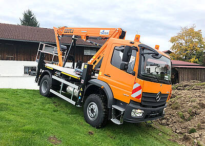 Zudem ist die RA31 variabel absetzbar und kann bis zu sieben Meter nach unten in den negativen Bereich arbeiten, was sich in unwegsamem Gelände bezahlt macht. Variabel wurde die Abstützung gestaltet, serienmäßig sind außerdem Funk-Fernbedienung sowie eine elektrohydraulische Notsenkung verbaut. Mit Korbarm und drehbarem Korb eignet sich die Kettenbühne des Weiteren für eine Vielzahl von Einsätzen – sowohl im Innen- als auch Außenbereich. Als zusätzliche Ausstattungen verfügt die gelieferte Maschine über die Optionen „Automatische Abstützung“ und „Home-Funktion“.