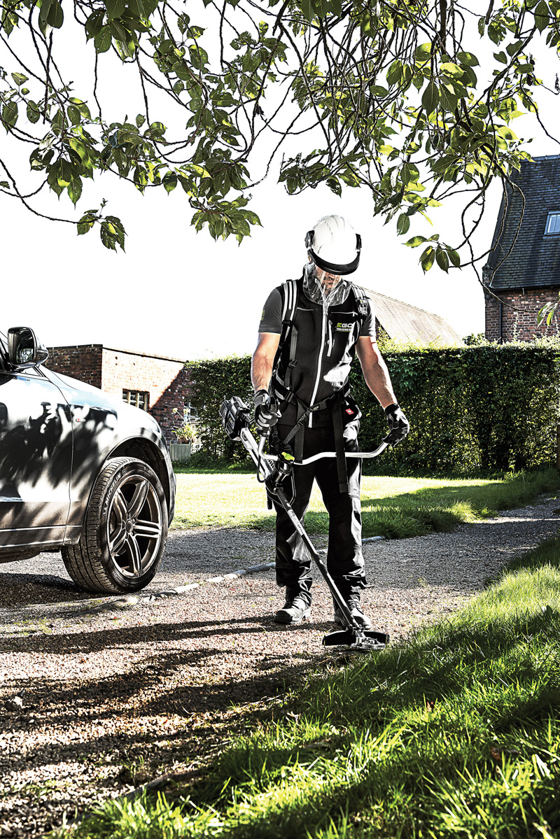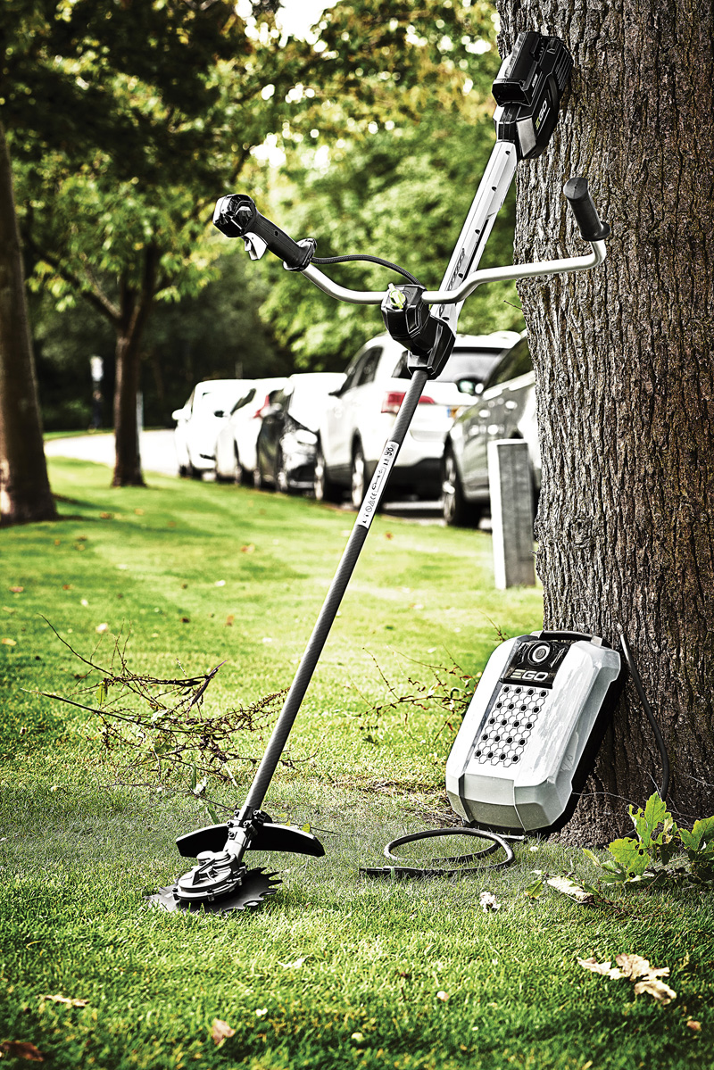 EGOs neueste Lösung hierfür heißt Rotocut RTX2300 – ein Kreiselscheren-Aufsatz mit 23 Zentimeter Schnittbreite aus einer hochfesten Stahllegierung. Der Aufsatz schneidet an Wegen und Kanten mit Leichtigkeit Unkraut und Moos. Zwei gegenläufige Messer verhindern dabei auch dank der niedrigen Schnittgeschwindigkeit das Herumschleudern von Steinen sowie Schmutz und verlängern zudem die Akku-Laufzeit gegenüber dem Trimmerfaden. Ein Vorteil des Konzepts der gegenläufigen Klingen ist die höhere Standzeit der Schneiden, ein gleichmäßigerer Verschleiß, weniger Vibrationen und geringere Belastung für das Getriebe gegenüber Kreiselscheren im „Schnipp-Schnapp“-Modus. Damit eignet sich das Werkzeug ideal zur Nutzung in bebauten Gebieten, wo das Risiko von Beschädigungen und Verletzungen besonders hoch ist. Mit dem flachen Getriebe kann es auch in schwer zugänglichen Bereichen eingesetzt werden.