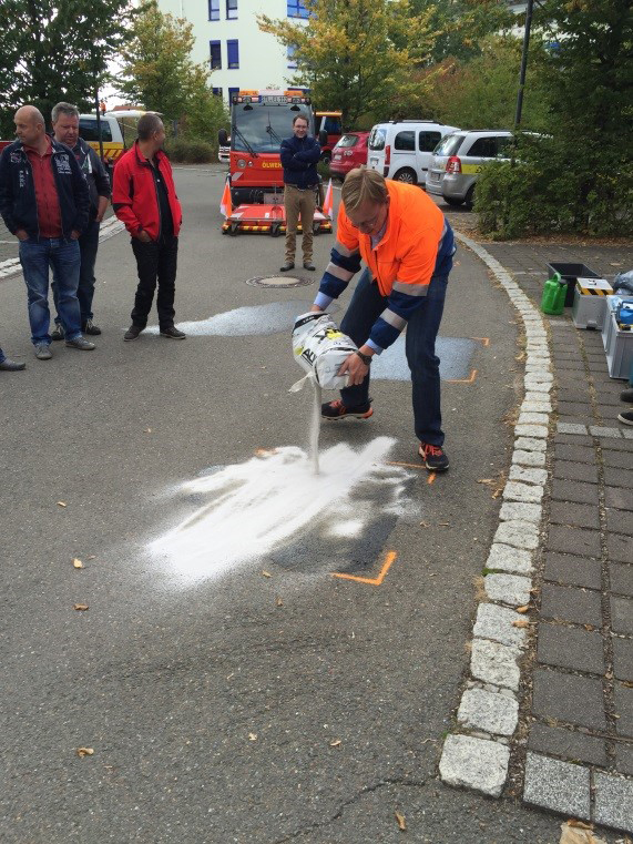 Ebenfalls wird ein sehr großer Wert auf einen weiteren wichtigen Bestandteil der Ölspurbeseitigung – die Verkehrsfreigabe bzw. Freigabe der Fahrbahn nach erfolgten Maßnahmen. Wer ist berechtigt, die Straße für den Verkehr wieder frei zu geben? Genauso wichtig ist es jedoch, erkennen zu können, ob die Fahrbahn nach einer Bindemittelreinigung oder Nassreinigung die geforderte erforderliche Griffigkeit aufweist. Dazu gehört auch die entsprechende Dokumentation, um im Zweifelsfall ungerechtfertigte Regressansprüche aus dem immer weiter ausufernden Thema Schadenersatz mit den entsprechenden Nachweisen abwehren zu können.