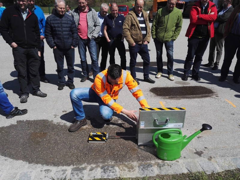Die Zielsetzung ist es, erkennen zu können ob Handlungsbedarf besteht und welche Mittel zur Beseitigung den erforderlichen Zustand der Fahrbahn – einem verkehrssicheren Zustand wie vor Eintritt des Schadens – herstellen können. Hierzu hat es sich bewährt, wie hier in einem Seminar im Rahmen der Interkommunalen Zusammenarbeit beim Landkreis Traunstein, eine praktische Anwendung vor Ort auf mehreren präparierten Testfeldern durchzuführen.