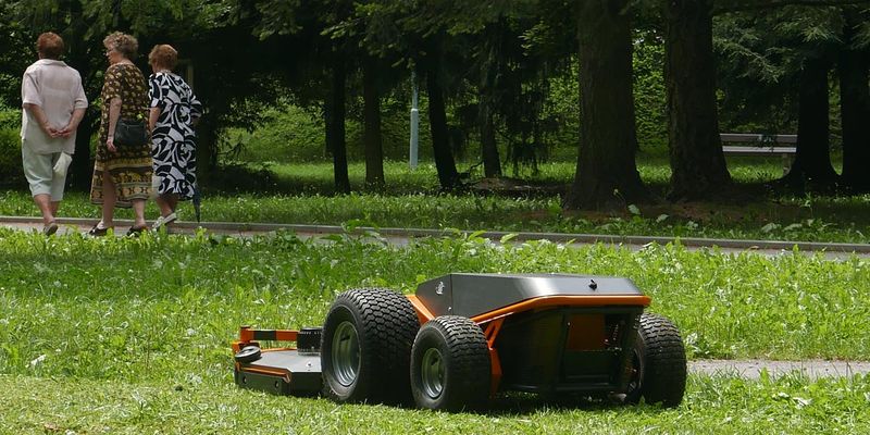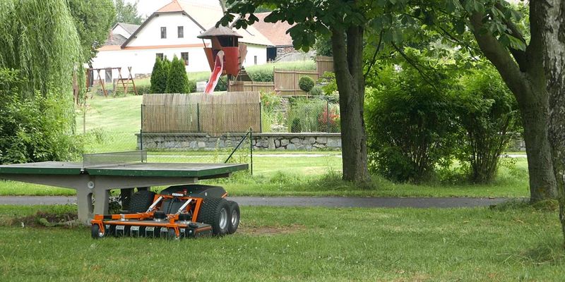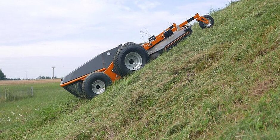 Durch das wendige Zero-Turn-Radius(ZTR)-Lenksystem und den Allradantrieb lässt sich der Träger sehr leicht manövrieren. Seine geringe Höhe erlaubt es Raymo, zuverlässig unter Solaranlagen, Bänken, Trampolinen und Bäumen zu mähen. Dank seines freischwebenden Decks ist der Rasenmäher auch in Hanglagen und hügeligem Gelände grasschonend.