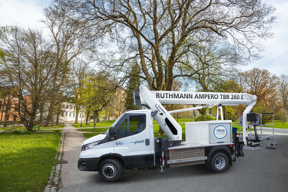 Als erste Schweizer Kundin hat sich die Basler Energieversorgerin IWB für einen STEIGER AMPERO TBR 260 E auf einem vollelektrischen IVECO Daily 70C14E entschieden. IWB macht damit einen weiteren Schritt in Richtung nachhaltiger Arbeitslösungen. Dieses Fahrzeug setzt neue Maßstäbe in Bezug auf geräuscharmes sowie abgasfreies Arbeiten. Die Hubarbeitsbühne zeichnet sich durch ein durchdachtes Antriebssystem aus. Sie ist ab sofort auf dem Serien-Fahrgestell des neuen IVECO Daily 70C14E verfügbar. Diese vollelektrische Arbeitsbühne erreicht 26 Meter Arbeitshöhe und eine maximale Reichweite von 17 Metern. Mit einer Batterieladung sind bis zu 150 km Fahrt und zusätzlich circa vier Stunden reiner Hubarbeitsbühnenbetrieb möglich. Dies reicht normalerweise für einen ganzen Arbeitstag. Schlüssel zu diesem Konzept ist die intelligente Nutzung der 74-kWh-Batterie des IVECO, die sowohl für den Fahrantrieb als auch für den Betrieb der Hubarbeitsbühne verwendet wird.