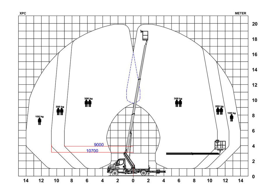 Mit einer horizontalen Reichweite von 14 Metern deckt der V-200 einen großen Arbeitsbereich ab und ist extrem leistungsstark. Die Arbeitsbühne verfügt über eine hohe maximale Korblast von 300 kg und bietet für zwei Personen Platz im Arbeitskorb. So kann der Bediener auch problemlos Werkzeuge und Material im Korb transportieren. In der Transportstellung ist die Maschine weniger als drei Meter hoch.