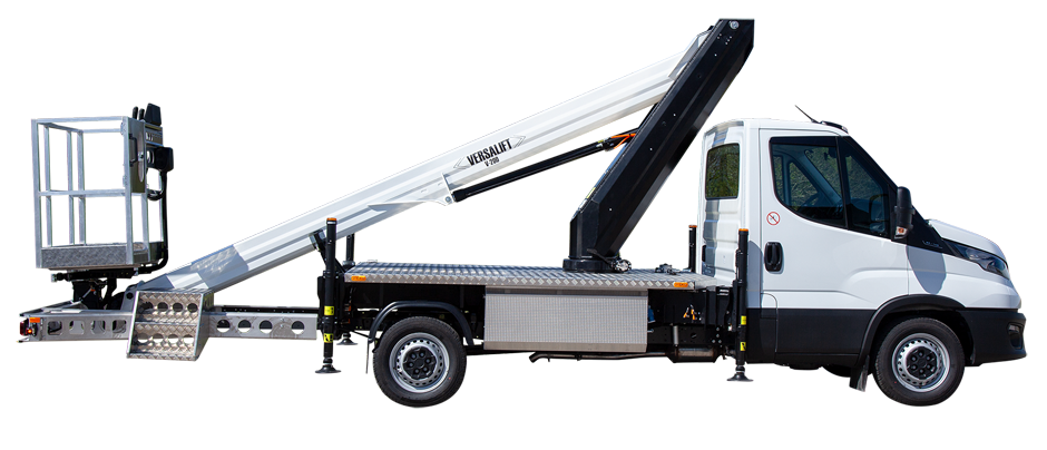 Mit 19,9 Metern Arbeitshöhe feierte der VERSALIFT V-200 auf der APEX-Messe 2023 seine Premiere. Die leistungsstarke Teleskopbühne fährt auf einem leichten Iveco Daily mit einem Radstand von 3.750 mm. Ein kurzer Radstand verkleinert den Wenderadius und gewährleistet beste Manövrierfähigkeit. Sowohl das Teleskop als auch der Hilfsrahmen des V-200 sind aus hochfestem Stahl gefertigt. Sie sind leicht, dennoch robust und bieten reichlich freie Nutzlast für die Installation eines VERSALIFT-Hybridsystems, wie z. B. des E-Tech-Lithium-Batteriepakets.