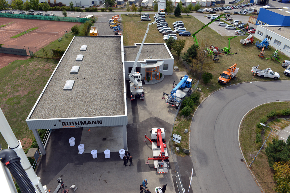 Zahlreiche Kunden und Interessenten nutzten die Einweihungsfeier zu ausgiebigen Probefahrten mit unserem brandneuen HEIGHT performance-STEIGER ® T 380. Diese STEIGER ®-Innovation rundet unsere erfolgreiche HEIGHT performance-Baureihe nach unten ab. Das Auslegerkonzept des T 380 besteht – genau wie bei beim T 460, T 540 und T 720 – aus einem sehr langen, teleskopierbaren Oberarm und ebenfalls langem, beweglichen RÜSSEL ® (Korbarm). Für den Anwender bedeutet das pure Nutzenvorteile. Er kann so zusätzliche 5,0 Meter Oberarmlänge im Vergleich zu bisherigen Modellen dieser Klasse erreichen.