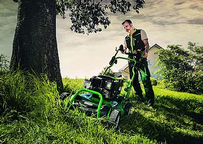Ein idealer Partner für widrige Bedingungen ist der Mulchmäher 53-PRO M VARIO AC, der auch bei nassem Gras ein gutes Ergebnis liefert. Er ist sehr manövrierfähig und daher auch für schwieriges Gelände optimal geeignet. Der VARIO-Antrieb aller Profi-Akku-Rasenmäher ermöglicht eine variable Anpassung des Hinterradantriebs für eine leichte Handhabung, selbst an steilen Hängen.