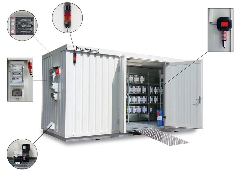 Mit dem isolierten Gefahrstofflager Control setzt SÄBU neue Maßstäbe bei der Lagerung von brennbaren Gefahrstoffen. Der SAFE Tank Control sichert Personen und Objekte vor gefährlichen Gasen und Gas-Luftgemischen.