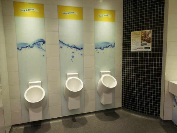 „Der Besucher merkt sehr schnell, dass unsere WC-Anlagen etwas Besonderes sind. Edles, freundliches Design beeindruckt, helle und blitzsaubere Räume erfreuen, berührungslose Steuerung bei den Armaturen und der WC-Spülautomatik begeistern. Sanfte Musik, mikrofeine Duftzerstäuber und freundliches, hilfsbereites Personal schaffen eine Wohlfühlatmosphäre, die schnell und gründlich die Vorbehalte gegen öffentliche Toiletten ausräumt.“