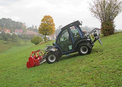 Die Umstellung auf die neuen Grip4 war für die meisten Mitarbeiter erst einmal sportlich und anspruchsvoll. Denn die Sauerburger Hangtraktoren bieten wesentlich mehr Bedienvarianten in der Anwendung und den Komfort moderner Standard-Traktoren. Wenn man die Bedienung verstanden hat, dann geht alles viel leichter und vor allem schneller und komfortabler. Da geht die Arbeit leicht von der Hand. Auch der Zugang zum Motor, den anderen Baugruppen und Komponenten sowie der An- und Abbau der Geräte ist sehr gut gelöst und praxisgerecht.