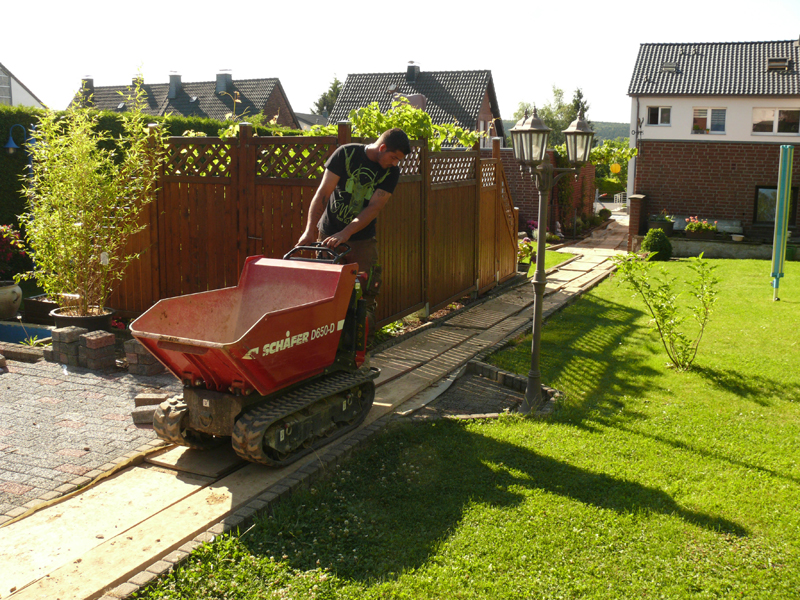 Mario Steil ist ein erfahrener und erfolgreicher Garten- und Landschafts- sowie Schwimmteichbauer. Neben großer Kreativität sind in diesem Metier perfektes Handwerk und ausgezeichnete Maschinentechnik gefragt. „Wegen der vielfältigen Aufgaben, die wir bei unseren Projekten realisieren – oftmals in schwer zugänglichen Bereichen von Hausgärten – haben wir uns vor einiger Zeit einen Schäfer Minidumper zugelegt. Er hat sich mittlerweile als eine hervorragende Entlastung und ausgezeichnete Baumaschine für uns bewährt“, sagt Mario Steil. Steil führt zusammen mit seiner Frau Miriam und Diana Hacker das Familienunternehmen GaLa-Bau Peter Hacker aus Stolberg, nahe Aachen gelegen. 1972 gegründet, hat es sich auf die Schwerpunkte Natur- und Kunststeinarbeiten, Natur- und Schwimmteichbau, Terrassen- und Gartengestaltung sowie Gartenholzbau spezialisiert. Diese GaLaBau-Aufgaben haben meist mit dem Transport von Erdreich, Steinen und Materialien zwischen schwer zugänglichen Gartenbereichen und zum Beispiel einem Lkw zu tun. Hier ist der Schäfer Minidumper D650-D eine ausgezeichnete Hilfe.