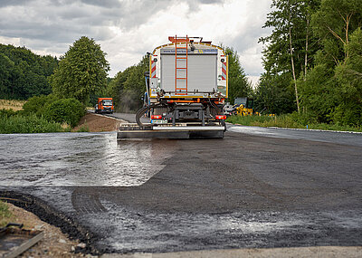 Für vollumfängliche Leistung ist die Maschine auf einem Kompaktfahrgestell mit 1,70 Meter Breite aufgebaut. Dadurch eignet sie sich für DSK-Arbeiten auf engem Raum und ermöglicht die maschinelle Sanierung von beengten Fahrbahnen, Rad- und Fußwegen. Ebenfalls verfügt der Mini-Mix A1,7 über ein Modul für den Einbau farbiger DSK-Beläge. Diese erzielen eine visuelle Signalwirkung und erhöhen die Sicherheit aller Verkehrsteilnehmer. Ein besonders bekanntes Beispiel sind rot gefärbte Radwege.
