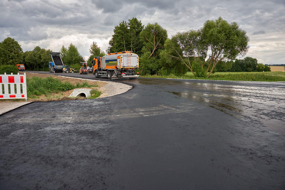 Kalkmilch schützt Bitumenemulsionsschicht – schnellerer Baufortschritt