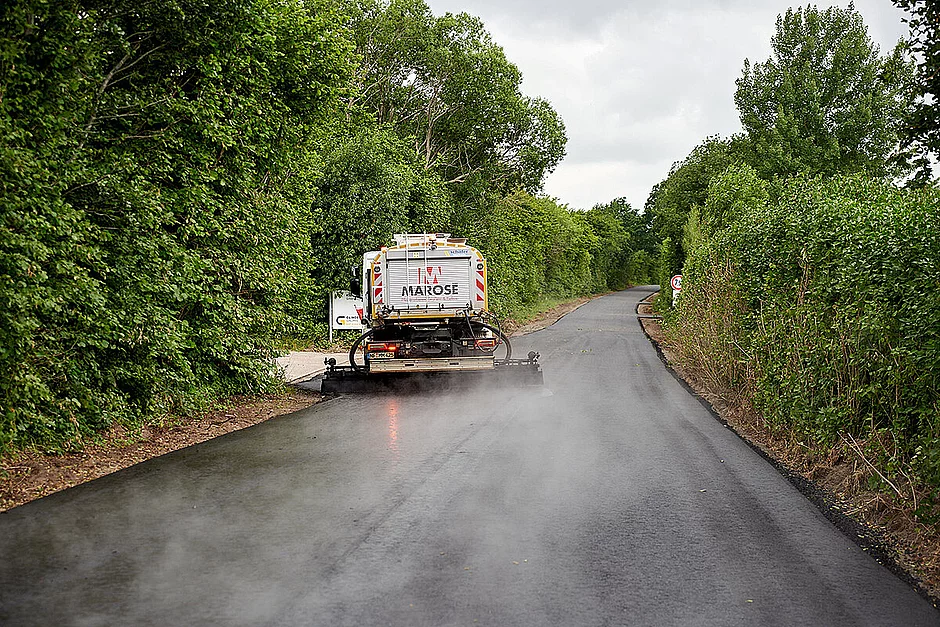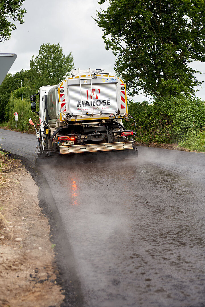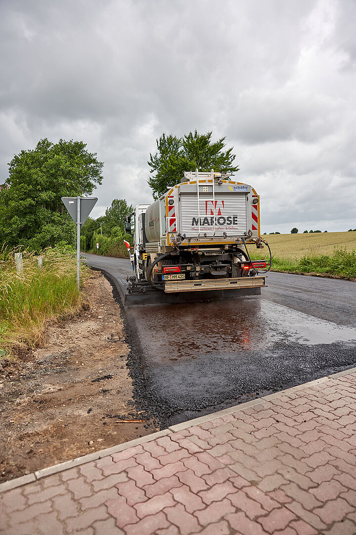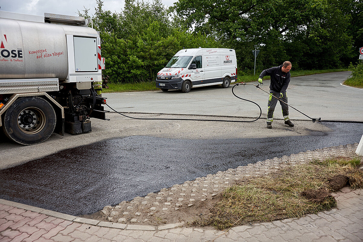 Als gelernter Straßenbaumeister ist Marose vom Fach – wie alle seine Mitarbeiter, die ebenfalls aus der Branche kommen. Eine der jüngsten Investitionen ist eine Lkw-Bitumen-Vorspritzmaschine von Schäfer-Technic. „Einen eigenen Maschinenpark halte ich für überaus wichtig, denn nach einem erfolgreichen Angebot und der Vorplanung der Baustelle kann ich so das komplette Geschehen im Baustellen-Ablauf zuverlässig abwickeln. Mietmaschinen und Dienstleister sind nicht immer verfügbar, wenn ich sie brauche,“ so der Gründer. So ist es nur konsequent, dass Marose über einen kompletten Maschinenpark für den Asphaltbau verfügt.