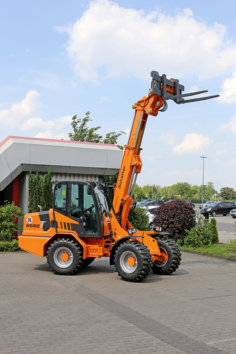 David Hoppe, Werkstattleiter der Amtswerkstätten in Nordsachsen, erklärt, warum die Wahl auf den knickgelenkten Teleradlader von Schäffer fiel: „Unsere bisherigen Lader waren in die Jahre gekommen. Besonders bei den Allrad-Lenkern stiegen in letzter Zeit die Instandhaltungskosten deutlich, hier machten uns unter anderem die Spurstangenköpfe regelmäßig große Probleme, die vom Streusalz angegriffen wurden. Wir haben uns schließlich für die Ausschreibung von knickgelenkten Teleradlader mit starren Achsen entschieden. Vorteil hier sind die sehr stabilen, geschlossenen Achsen und die hohe Reichweite auch ohne Hochkippschaufel. Die Hubhöhe beim 6680 T beträgt 4,95 Meter, womit alle Streuwagen problemlos beladen werden können.“ Zu einer Vorführung wurden neben Schäffer noch drei weitere Hersteller eingeladen. „Beim Schäffer passte das Gesamtpaket. Besonders gut haben uns die serienmäßigen, im Ölbad laufenden Lamellenbremsen gefallen, die beim Wettbewerb als offene Scheibenbremsen ausgelegt sind. Aufgrund des Kontaktes mit den aggressiven Auftausalzen müssen alle Komponenten besonderen Qualitätsanforderungen genügen.“, so David Hoppe.