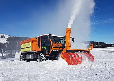 Im Kommunalbereich ist der Fahrzeughersteller aus der Zentralschweiz vom Flughafen bis in die Bergregion eine feste Grösse. Mit dem Schiltrac macht nicht nur das Schneeräumen richtig Spaß, sondern auch die vielen weiteren Anwendungsmöglichkeiten bei der Feuerwehr, im Winterdienst oder der Forst- und Bauwirtschaft. Die hohe Nutzlast von bis zu acht Tonnen und die Kompaktheit mit 2,15 Meter Kabinenbreite sowie die Vierradlenkung sind wichtige Praxisvorteile.