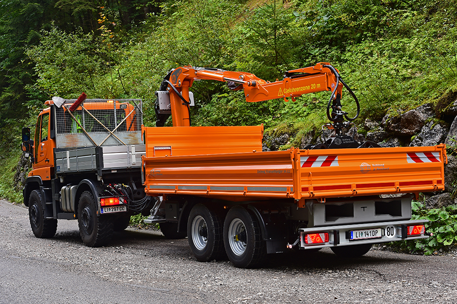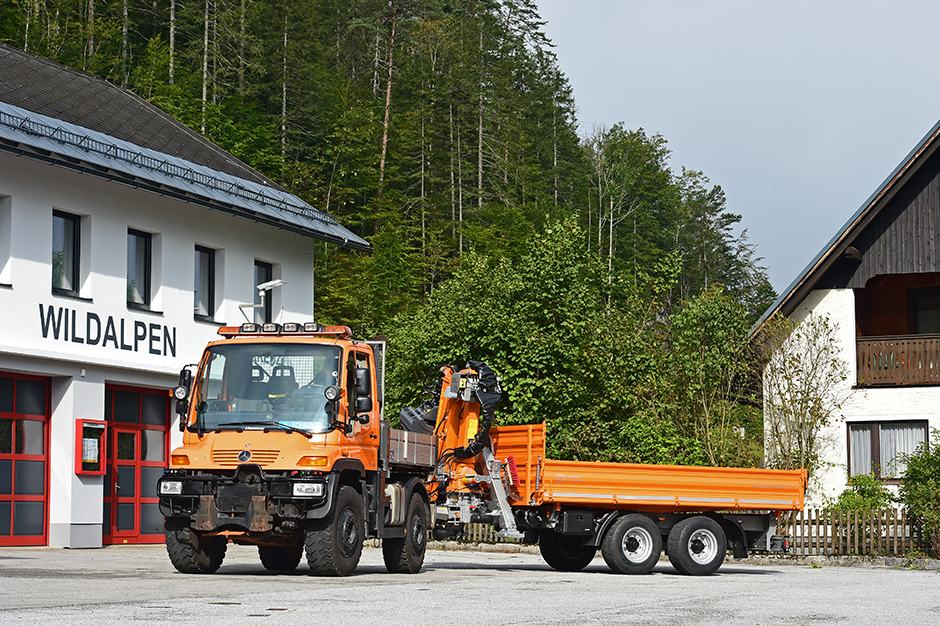 Die Gemeinde Wildalpen setzt seit vielen Jahren Unimog für den Kommunalbereich ein und ergänzt das Fahrzeug regelmäßig mit neuen Geräten, um es das ganze Jahr über nutzbar zu machen. Ein Krananhänger der Firma Schlang & Reichart, deren Produkte in Österreich vom Kommunalfahrzeug-Spezialisten Pappas vertrieben werden, ist die jüngste Anschaffung der steirischen Gemeinde. Dabei handelt es sich um eine maßgeschneiderte Lösung.