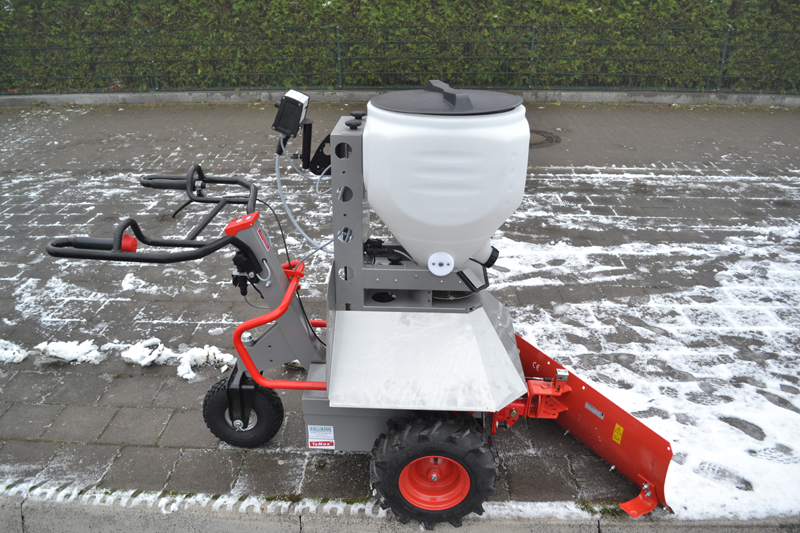 Durch das Edelstahl-Schutzblech ist der TeMax stets vor dem Salz geschützt. In Kombination mit dem verstellbaren Schneeschild, welches ein Meter breit und mit einer Kunststoffscharrleiste ausgestattet ist, ist Räumen und Streuen gleichzeitig möglich. Schneller und einfacher ist Schneeräumen kaum möglich.