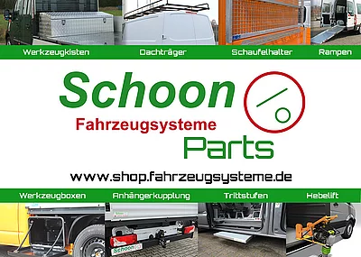 In Kombination mit einem Schoon-Kipper, einer Schoon-Pritsche oder einer Werkspritsche sind die Fahrzeuge ganzjährig einsatzbereit. Schoon-Winterdienstanbaugeräte können zur Sommersaison oder auch während der Wintersaison mit wenigen Handgriffen per „Plug&Play“ an- und abgebaut werden. So lassen sich auch kurzfristig Räum- oder Streueinsätze fahren. Je nach Fahrzeug und verfügbarer Achslast wird frontseitig ein Schneeschild montiert. Es stehen acht Schneeschilder zur Auswahl: Typ „ALPHA“ aus Spezialkunststoff Polycarbonat, als Stahl-Ausführung in gerader Form oder als Stahl-V-Pflug. Diese Schneeschilder zeichnen sich durch hohe Festigkeit aus und ermöglichen so ein effizientes Räumen. Sie werden über eine Steuerung vom Fahrersitz aus bedient. Optional können seitlich am Schild Markierungsstäbe zur besseren Orientierung angebracht werden.