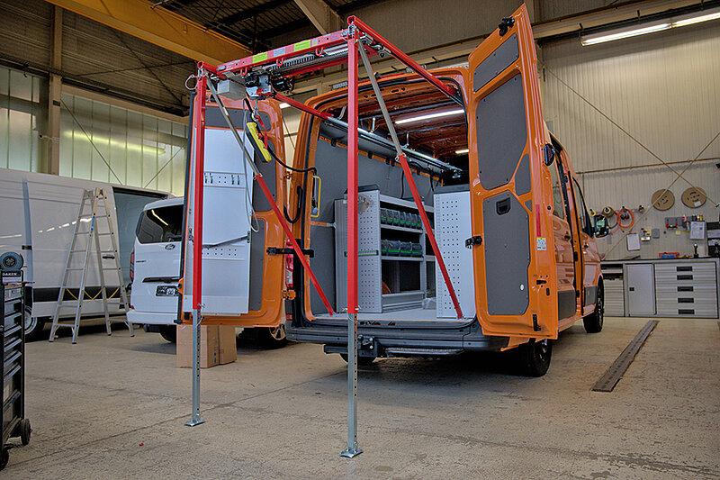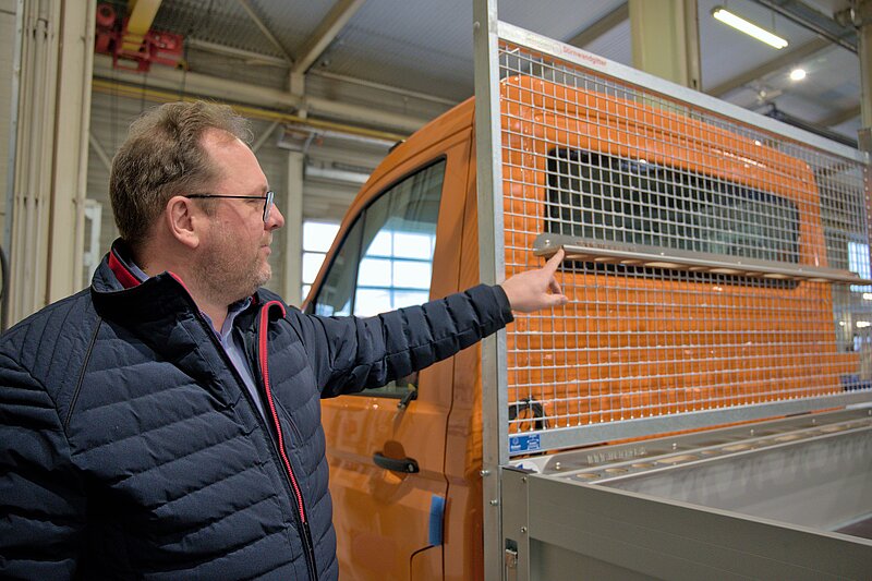 Hinter den Autoplätzen ist Werk 2 schon in Sicht. Während Werk 1 zum Aufbau von Fahrgestellen dient, ist die zweite Halle dem Ausbau von Kastenwägen gewidmet. Vom lebensmittelsicheren Bäckermobil bis zum Sprinter für die Kanalreinigung ist alles dabei. Verkaufsleiter Christian Kampmann führt durch die Einrichtung und gibt Einblicke in die typische Konzeption eines Fahrzeugs: „Individuelle Konzepte bedürfen einer kompetenten, persönlichen Beratung, das schafft kein Konfigurator. Deswegen sind unsere Außendienstler täglich deutschlandweit unterwegs und persönlich bei den Kunden. Alternativ kann die Beratung auch bei uns im Werk stattfinden.“ Denn neben dem persönlichen Austausch seien Einblicke in die Werkstatt und die Umbauprozesse ebenfalls hilfreich, um mögliche Aufbauten genauer zu erklären.