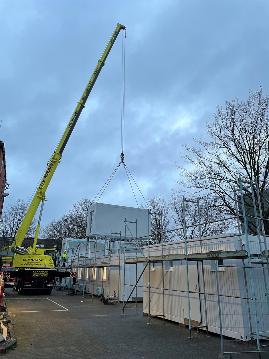 Lieferung und Fertigstellung der Containeranlage erfolgten innerhalb von nur drei Wochen, was die Effizienz und Flexibilität des Projekts unterstreicht. „Und nach dem derzeitigen Einsatz können die Container für einen anderen Verwendungszweck, wie z.B. Klassenräume oder Wohnunterkünfte, umgerüstet werden“, so Projektleiter Michael Streifels.