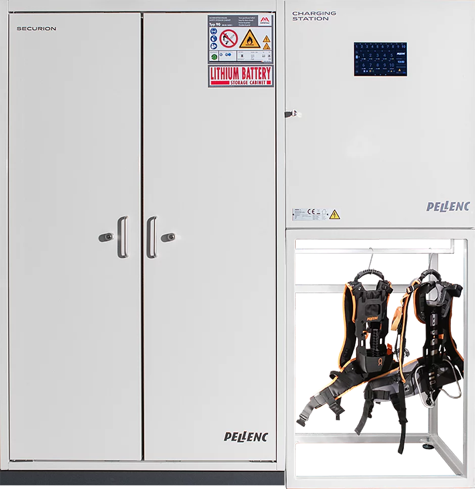Securion ist als Modulsystem mit dem smarten Ladeschrank PELLENC-Charging-Station integrierbar und biete – durch umfangreiche interne Elektrifizierung – auch einen TÜV-geprüften Brandschutz für Ladegeräte und Akkus anderer Hersteller. Nach Angaben des Herstellers werden drei Ausführungen angeboten: Securion 20 zur gleichzeitigen Ladung von 20 PELLENC-Akkus (zweitürig, integrierbar mit zwei PELLENC-Charging-Stations), Securion 10 (eintürig, zur gleichzeitigen Ladung von zehn PELLENC-Akkus, Kombination mit einer Charging-Station) und Securion 5 (zweitürig in halber Höhe, Ladung von zehn Akkus).