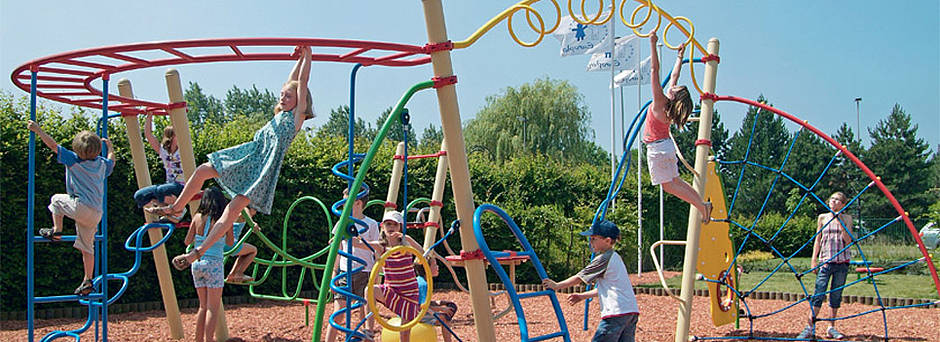 Ältere Kinder und Jugendliche brauchen Herausforderungen. Hier bieten wir Ihnen zahlreiche Klettergeräte und ganze Spielstädte für abenteuerlustige Kinder an. Unsere Spielplatzgeräte lassen sich dabei individuell erweitern.