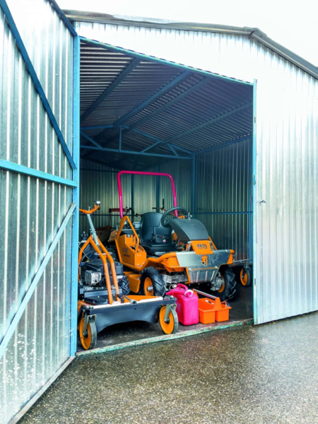 Zu viel kann hier durchaus schädlich sein, nicht an allen Geräten hängen aggressive Mittel wie Salz oder Dünger. Hochdruckreiniger sollten daher nur auf unempfindliche Flächen gerichtet werden, Kugellager und Elektrik dagegen sind dagegen allergisch. Hier empfiehlt sich eher die Pistole des Kompressors. Verrottendes Gras ist zudem aggressiv und kann Korrosion in Mähdeck und Co. beschleunigen. Es muss daher sauber entfernt werden. Anschließend trocknen lassen und noch einmal ausgiebig laufen lassen, natürlich ohne aktiven Einsatz – sonst war das Waschen verschwendete Mühe. Der größte Vorteil der Reinigung vor dem Winterquartier ist, dass man Schäden erkennt. Denn über die kalte Jahreszeit lassen sich diese einfacher reparieren als mitten in der nächsten Saison.
