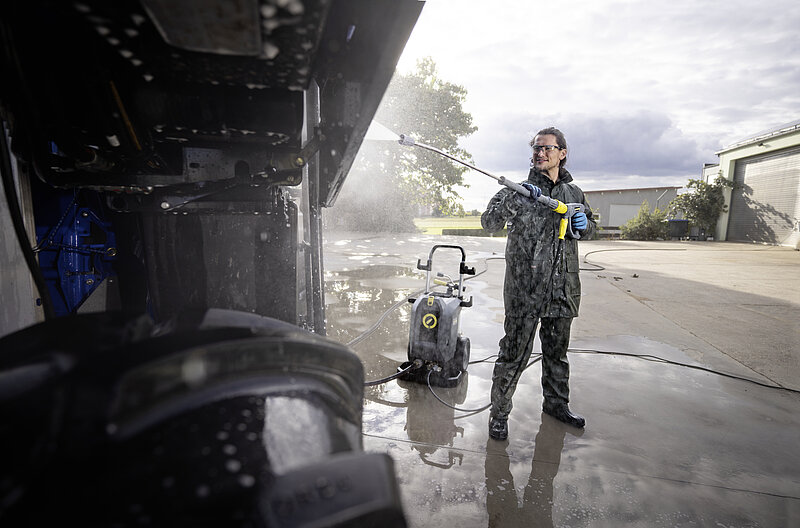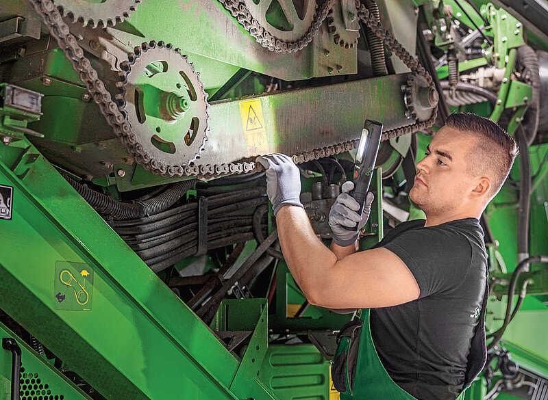 Das Einölen der Maschinen erfolgte in der Praxis lange Zeit mit einem Mix aus Öl und Diesel, gefühlt hatte jeder Schlosser sein eigenes Rezept. Dies ist aber natürlich nicht umweltverträglich, da es im nächsten Jahr während der ersten Einsätze in die Vegetation gelangt. Daher empfiehlt es sich, hier auf biologisch verträgliche Produkte wie etwa Sprühwachse zu setzen. Theoretisch würde auch reines Pflanzenöl aus dem Supermarkt funktionieren, es kann aber Schädlinge anlocken. Auch an lackierten Flächen werden so Haarrisse versiegelt und Rost verhindert.