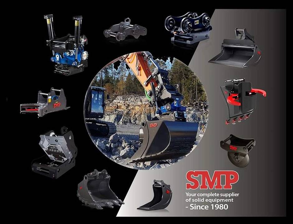 Im Frühjahr hatte das schwedische Unternehmen das neue f.o.c. system vorgestellt – einen vollautomatischen Schnellwechsler – den ST 4, einen Tiltrotator für Maschinen von zwei bis vier Tonnen, sowie den GRS-Greiflöffel. Der Greiflöffel kann wie ein normaler Tieflöffel benutzt werden, jedoch mit der Option, aufgrund der sich im Rücken des Greiflöffels befindlichen Greifklaue, Greif- und Hebearbeiten auszuführen. Zwischenzeitlich bietet SMP nun als Full Liner ein komplettes Sortiment: vom Schnellwechsler über den Tiltrotator (Swingotilt) bis hin zur Schaufel.