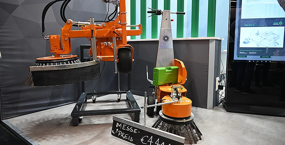 Kundenbedürfnisse rückt auch explizit die WeedMaster-Reihe in den Mittelpunkt. Denn schon nach der GaLaBau Mitte September war für die SMB-Geschäftsführung eindeutig klar: Die Übernahme des Bereiches mechanische Wildkrautentfernung der Michaelis Maschinenbau GmbH im Juni hat sich als strategisch sinnvoller Schachzug erwiesen. Einen leistungsstarken Antrieb, der zu einem sehr guten Arbeitsergebnis beiträgt, bietet beispielsweise das Wildkrautanbaugerät „WeedMaster KM 40“. Hochwertige und gut abgestimmte Komponenten sowie die solide Konstruktion verleihen dem Modell die angestrebte Prozesssicherheit. Durch die einfache Montage und nahezu unabhängige Anbausituation ist die KM 40 durch eine integrierte Hydraulikpumpe, die per Zapfwelle angetrieben werden kann, an unterschiedlichen Fahrzeugen verwendbar. Somit lässt es sich an diverse Pflegeschlepper-Modelle mit Frontzapfwelle anbauen. Aufgrund der Möglichkeit des seitlichen Teleskopierens der Bürste bietet das Gerät beste Übersicht. Dagegen eignet sich das ähnlich kraftvolle Modell „WeedMaster KM 30“ bestens zum Anbau an verschiedene Multifunktionslader, und das „WeedMaster KM 20“ kommt in erster Linie für Kommunalfahrzeuge, kleinere Lader sowie Traktoren in Frage.