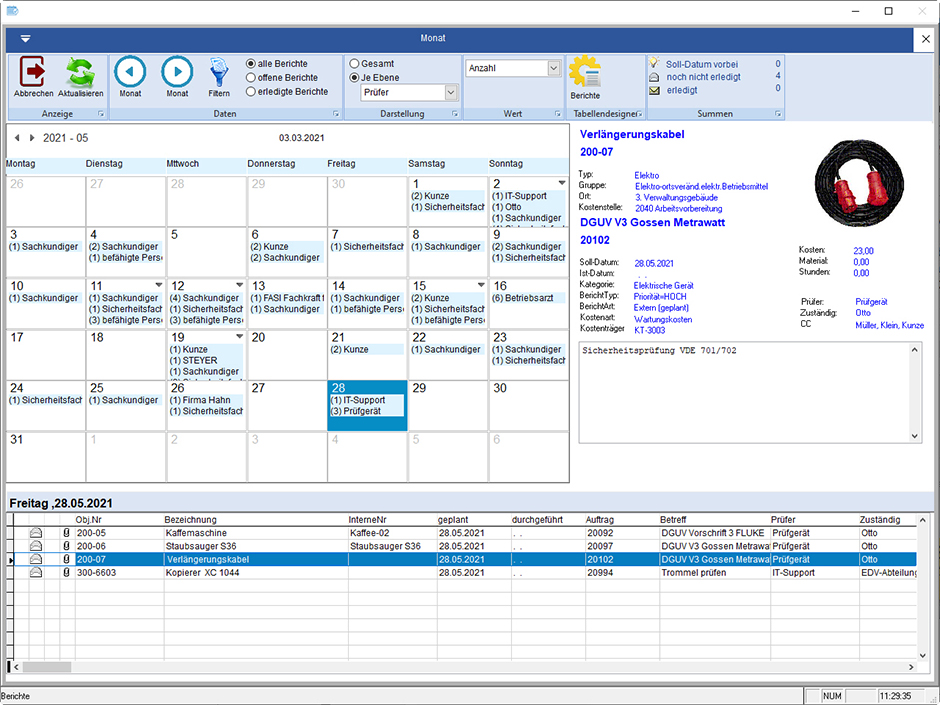 Geräte müssen sicher für die Mitarbeiter sein. Der Gesetzgeber sieht deswegen eine Vielzahl von Prüfungen der unterschiedlichen Gerätschaften vor, um Sicherheit zu gewährleisten. Software kann dabei helfen, sämtliche Prüfvorschriften und Prüf-Fristen im Blick zu behalten und die Ergebnisse der Wartungen rechtssicher zu dokumentieren.
