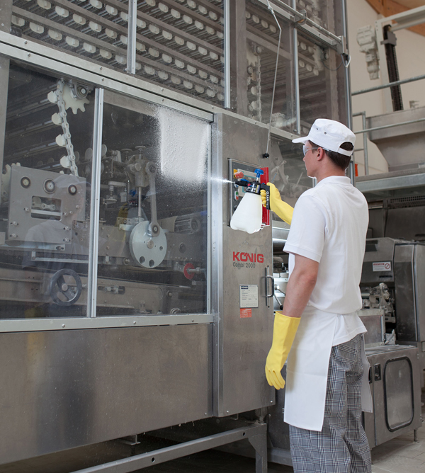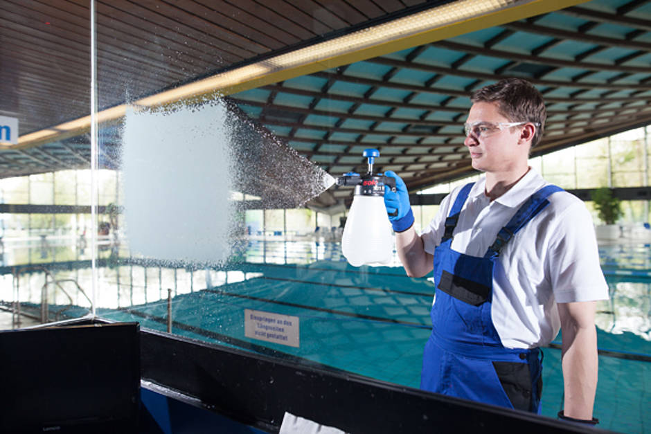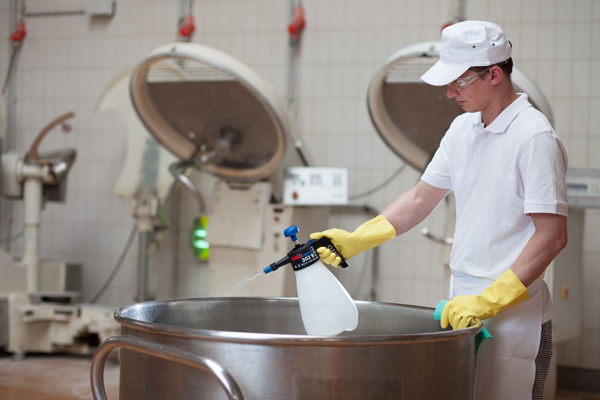 Dichtungen und Düsen sind den jeweiligen Anwendungsbereichen angepasst: Bei den Spritzen für säurehaltiger Medien sowie öl- und lösungsmittelhaltigen Reinigern wird FKM als Dichtungsmaterial verwendet. Sollen alkalische Reiniger, beispielsweise zur Entfettung, ausgebracht werden, kommen EPDM-Dichtungen zum Einsatz.
