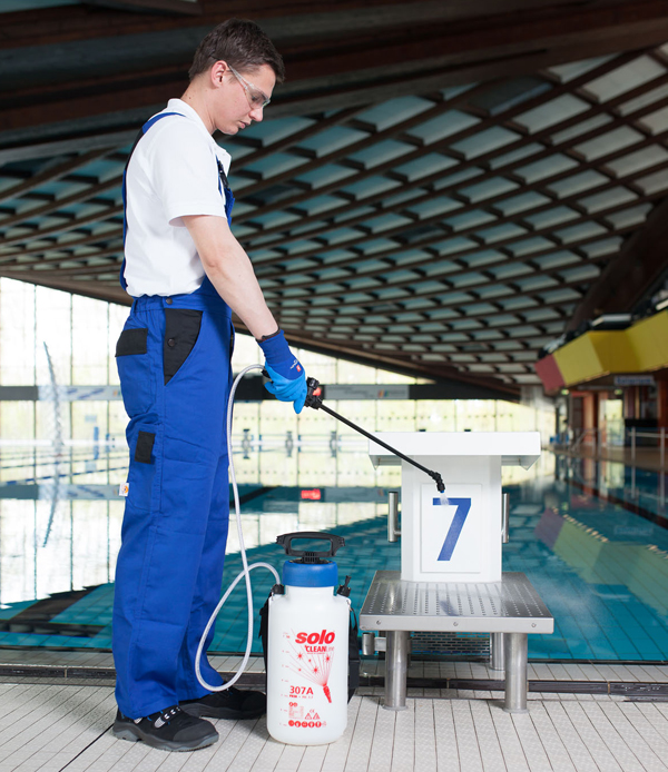 Der Transfer dieses fundierten Know-hows in den Bereich Reinigung und Desinfektion war somit naheliegend. Die Gene, die SOLO seinen Reinigungsspritzen mitgibt, sind also bewährt und vor allem profitauglich: Solide, gegen UV-Strahlung und Chemikalien resistente Kunststoffbehälter mit unterschiedlichen Füllvolumen bilden die Basis. Ergonomisch geformte Bedienelemente, große Öffnungen zum Füllen bzw. Entleeren und gekapselte Pumpen, die schon mit wenigen Hüben den maximalen Behälterdruck aufbauen. Die hochwertigen Düsen sind speziell für die Flächenanwendung konzipiert und chemikialienresistent.