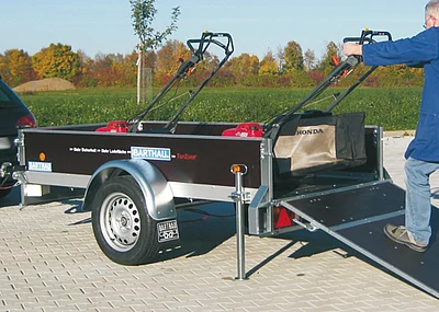 Die Auflagefläche des Anhängers bietet die Möglichkeit zur Beförderung von größeren Transportgütern (Wannenmaß 85 x 62 x 8 cm) mit einem Ladevolumen von 775 Litern. Der Anhänger ist mit nur 80 cm Fahrbreite, inkl. Laufräder, schmaler als die meisten Kinderanhänger. So lassen sich sperrige und längere Gegenstände, wie beispielsweise Maschinen, Ersatzteile oder auch Leitern, staufrei und CO2-neutral in der Innenstadt befördern. Darüber hinaus kann der Anhänger mobil auch als Handwagen im Gebäude genutzt werden. Der robuste Fahrradanhänger mit nur 11,9 kg Gesamtgewicht verfügt über eine durchgängige Edelstahlachse sowie einen Edelstahlständer für ein sicheres Be- und Entladen und erlaubt eine Beladung bis 45 kg. Über Sortimo ist der Anhänger nur in Verbindung mit dem Kauf des Lastenfahrrads erhältlich.