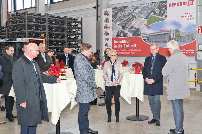 Anschließend gratulierte LH Mag. Thomas Stelzer zum jahrzehntelangen, erfolgreichen Bestehen der REFORM-Werke und zu dieser zukunftsträchtigen Investition. Auch WKO Präsidentin Mag. Doris Hummer lobte den Erfolg des Unternehmens und freut sich auf die nächsten 100 Wirtschaftsjahre. Der Welser Bürgermeister Dr. Andreas Rabl erwähnte die positive Wirtschaftsentwicklung in Wels und die schnelle Umsetzbarkeit von so großen Projekten, die nachhaltig dem Standort Wels dienen.