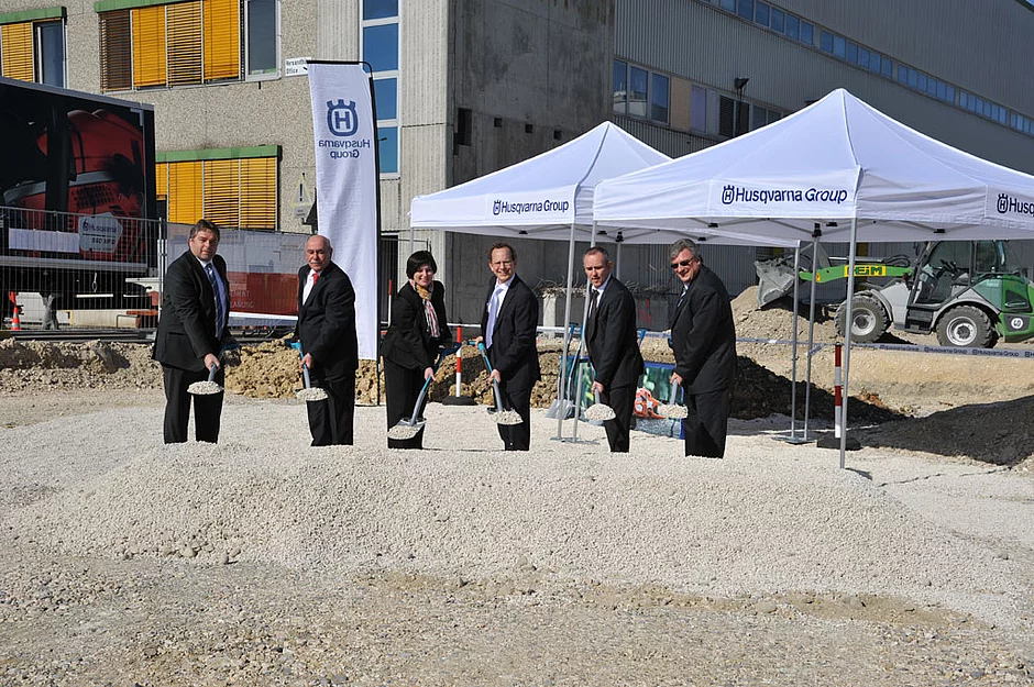 Mit dem Spatenstich am Donnerstag setzten Oberbürgermeister Ivo Gönner sowie Sascha Menges, Vorstand für Produktion und Logistik der Husqvarna Group, Finanzgeschäftsführer Joachim Müller und Peter Fischer, der die Logistik für Südwesteuropa leitet, den Auftakt zum Bau der neuen Logistikhalle an der Hans-Lorenser-Straße im Ulmer Donautal. Zum Jahresbeginn 2015 soll der Neubau bereits in Betrieb gehen.