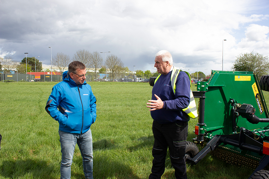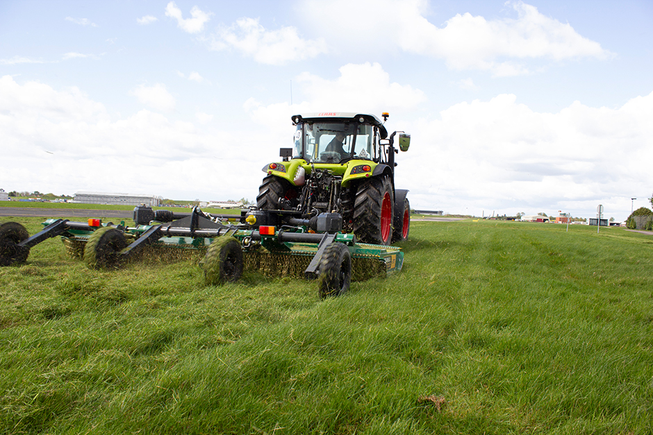15 Uhr auf dem Coventry Airport. Eine einzelne Privatmaschine hebt gerade ab, hier und da verdecken Wolken die Sonne, der Wind rauscht durch das Gras. Und genau dieses ist heute Thema, wie Chris Derbyshire den anwesenden Journalisten berichtet. Derbyshire – breite Statur, weißes Haar, Sicherheitsweste – ist für die Pflege der Grünflächenanlagen des Geländes verantwortlich. Denn regelmäßiges Mähen ist auf Flughäfen wie Coventry elementar, immerhin erfüllt das Gras einige wichtige Eigenschaften. Während die Wiesen zwischen den Rollfeldern in den Anfangstagen der Luftfahrt noch als Kontrast dienten, um die Landebahn besser identifizieren zu können, sind sie mittlerweile aufgrund ihrer Dämmfunktion unverzichtbar. Im Vergleich mit anderen Untergründen kann Gras die Geräusche eines startenden Flugzeugs wesentlich besser absorbieren. Außerdem dient es als natürliches Drainagesystem, mit dem der Asphalt sicher und trocken bleibt. Theoretisch der perfekte Untergrund, der jedoch gepflegt werden muss. Bekanntermaßen ziehen ungemähte Grasflächen Insekten- und Vogelpopulationen an – beide sind auf einem Flughafen eher kontraproduktiv.