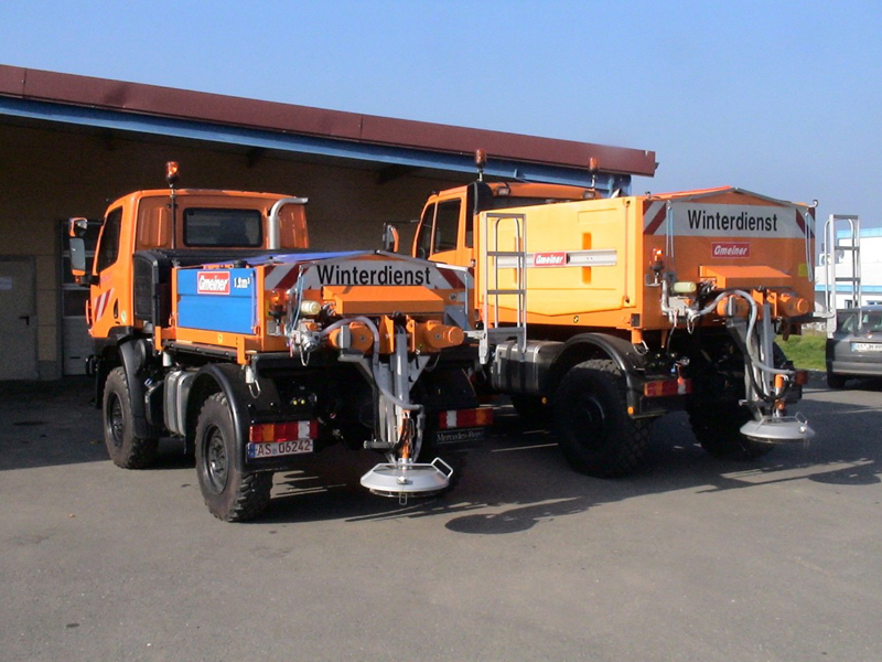 Gmeiner produziert und vertreibt Streuautomaten in Behältergrößen von 1,0 m³ bis 9,0 m³ sowie Schneepflüge mit Räumbreiten von 1.500 mm bis 3.500 mm und deckt somit den professionellen Bedarf von Kommunen, Straßen- und Autobahn-meistereien ab.