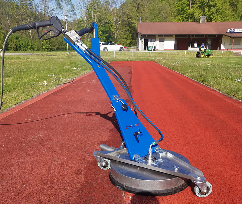DYNAJET hat sich auf die hohen Reinigungs-Anforderungen von Kommunen und Gebäudedienstleistern spezialisiert. Von der Reinigung von Plätzen, Bahnhöfen, Parkhäusern und Denkmälern bis hin zur Entfernung von Unkraut, Graffiti, Kaugummis oder Aufklebern ist ein entsprechender Hochdruckreiniger das perfekte Werkzeug. Doch auch im sportlichen Bereich kommen die Produkte des Unternehmens zum Einsatz. Tartanbahnen z.B. müssen jederzeit in einem einwandfreien Zustand sein, denn rutschige oder schadhafte Bahnen erschweren und gefährden den Sport. Es besteht erhöhte Unfallgefahr, die durch Verschmutzung, Verwitterung oder Algen- und Moosbildung entstehen kann. Die Flächenreiniger DFS VAC von DYNAJET mit bis zu 500 bar Wasserdruck und integrierter Absaugung stellen auch hier eine nachhaltige, hygienische und schnelle Nassreinigung sicher.