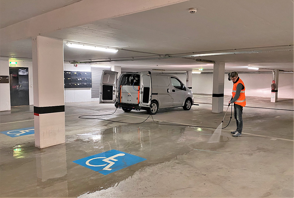 Ein Reinigungsfahrzeug, vielseitig einsetzbar, ohne Lkw-Führerschein zu fahren und möglichst mit günstigen Großserien-Fahrzeugen als Trägerfahrzeug kombinierbar – das waren die Kundenwünsche, die der Entwicklung des Reinigungs-Einbaus der Firma Vehitec zugrunde lagen. Bei der Konzeption wurde noch eins draufgesetzt: Der Antrieb wurde zu 100 Prozent elektrisch gestaltet, um auch perfekt mit emissionsfreien Trägerfahrzeugen zu harmonieren.